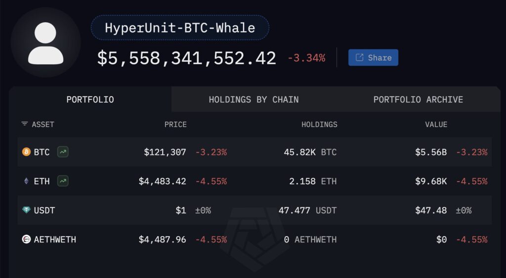Söz konusu yatırımcı, 10 milyar doların üzerinde Bitcoin’e sahipti. Şimdiye kadar Hyperunit aracılığıyla 5 milyar dolarlık ETH aldı. Cüzdanında halen 5.5 milyar dolar değerinde 45 binden fazla BTC yer alıyor.